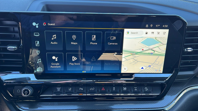 - AUDIO SYSTEM CHEVROLET INFOTAINMENT 3 PREMIUM SYSTEM with Google built-in compatibility (select service plan required terms and limitations apply) including navigation capability 13.4 diagonal HD color touchscreen includes multi-touch display AM/FM stereo Bluetooth streaming audio for music and most phones; featuring Wireless Apple CarPlay and Wireless Android Auto capability for compatible phones advanced voice recognition in-vehicle apps personalized profiles for infotainment and vehicle settings (STD)