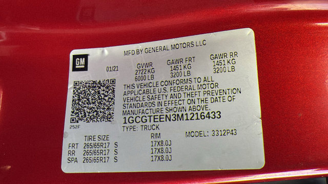 - VIN : 1GCGTEEN3M1216433